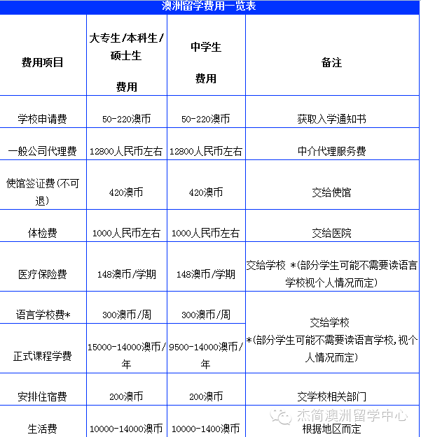 澳大利亚费用大盘点!